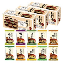 今回、「あさりのおみそ汁があったら嬉しい!」「色々な野菜の入ったおみそ汁も食べたい!」といったお客様のご要望にお応えして、「あさり」「五種の野菜」「玉ねぎとオクラ」の3種類の味わいを入れてリニューアルしました。