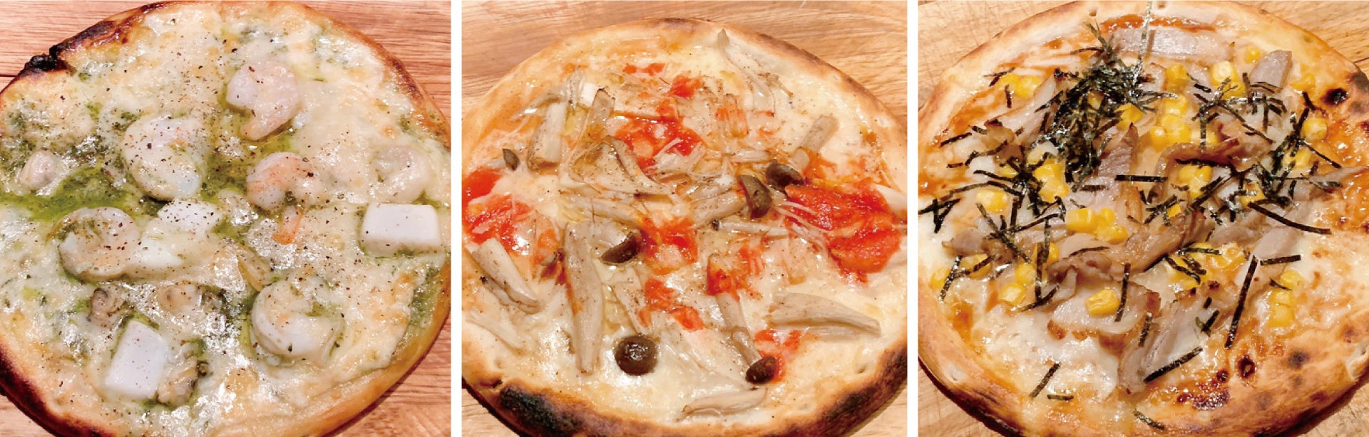 (左から)ジェノベーゼ・きのこのピザ・てりやきピザ