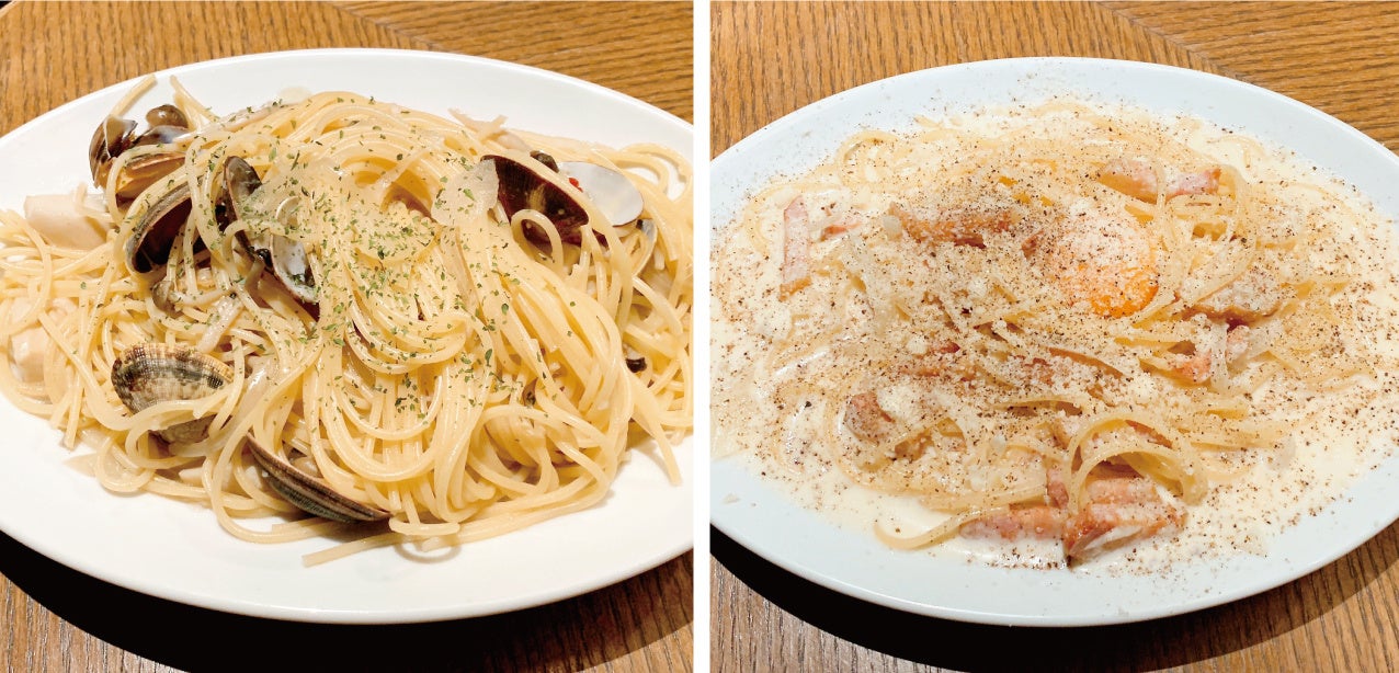 (左から)あさりきのこのビアンコ・ベーコンクリーム