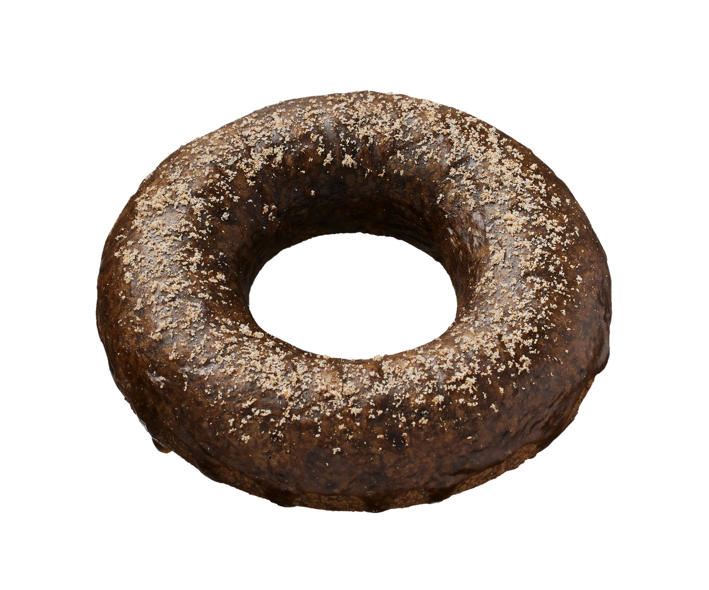 祇園辻利の宇治ほうじ茶と米粉で作ったもっちり食感が特徴のドーナツ生地に、粒状の栗の甘露煮が入った栗あんと濃いほうじ茶ホイップを絞りました。香ばしい香りをより感じることができる濃いほうじ茶ホイップと、栗あん、黒五黒糖シュガーの組み合わせが、ドーナツの味わいを引き立てます。