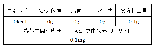 ■ 機能性関与成分および含有量:ローズヒップ由来ティリロサイドを、摂取目安量(1本、500ml)当たり0.1mg 含有します。