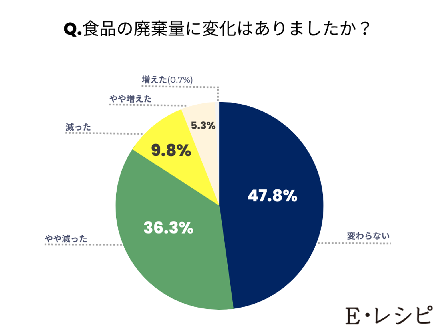 - 食材の廃棄量は約46%が「減った」「やや減った」と回答