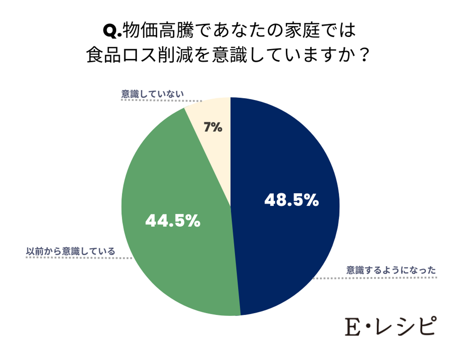 エキサイト株式会社(所在地:東京都港区、代表取締役社長:西條 晋一)が運営する、料理のプロが考案した約4万件の簡単レシピを公開する「E・レシピ」は、物価高騰と家庭での食材ロスの意識変化について調査を実施しました。