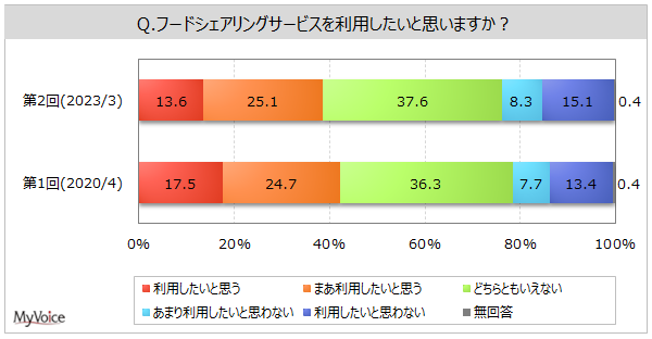 フードロス・食品ロス削減アプリやフードシェアリング関連のオンラインサービスを利用したいかを聞きました。