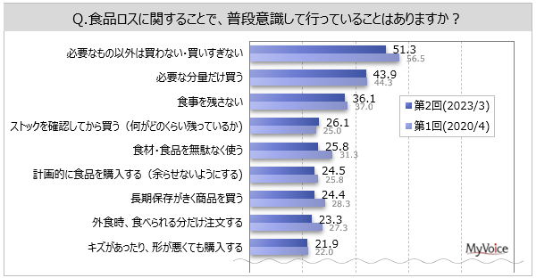 マイボイスコム株式会社(東京都千代田区、代表取締役社長:高井和久)は、2回目となる『食品ロス』に関するインターネット調査を2023年3月1日~5日に実施しました。調査結果をお知らせします。