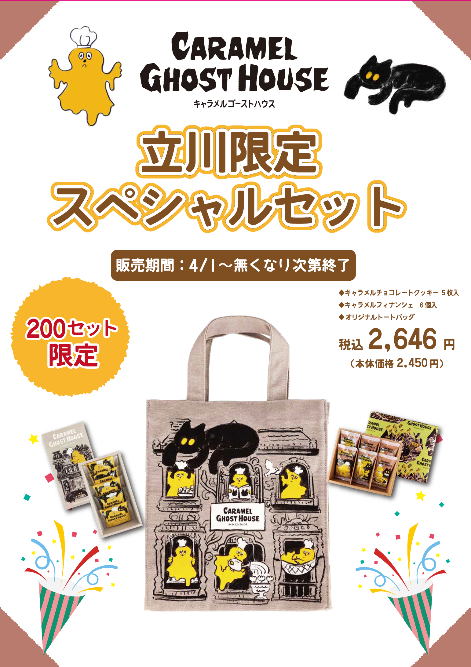 株式会社シュクレイ(代表取締役社長:阪本良一 本社:東京都港区)は、 2023年4月1日(土)~5月31日(水)の間、絶品キャラメルスイーツをコンセンプトにしたブランド【キャラメルゴーストハウス】 をルミネ立川店に出店します。