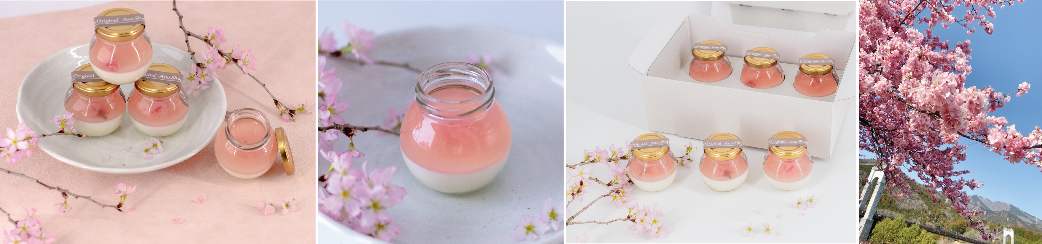 鮮やかな八重桜を軸がついたまま梅酢と塩にじっくり漬け込んでつくる『丹沢のさくら漬』。当社の既存商品である濃厚な味わいの『白いプリン』と、爽やかな風味の『さくら漬』の相性を追求し、白とピンクの2層が見た目にも華やかな「さくらプリン」が完成しました。