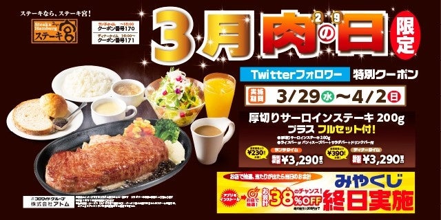 「肉の日スペシャルステーキセット」をアプリ会員とTwitterフォロワー限定で販売いたします。