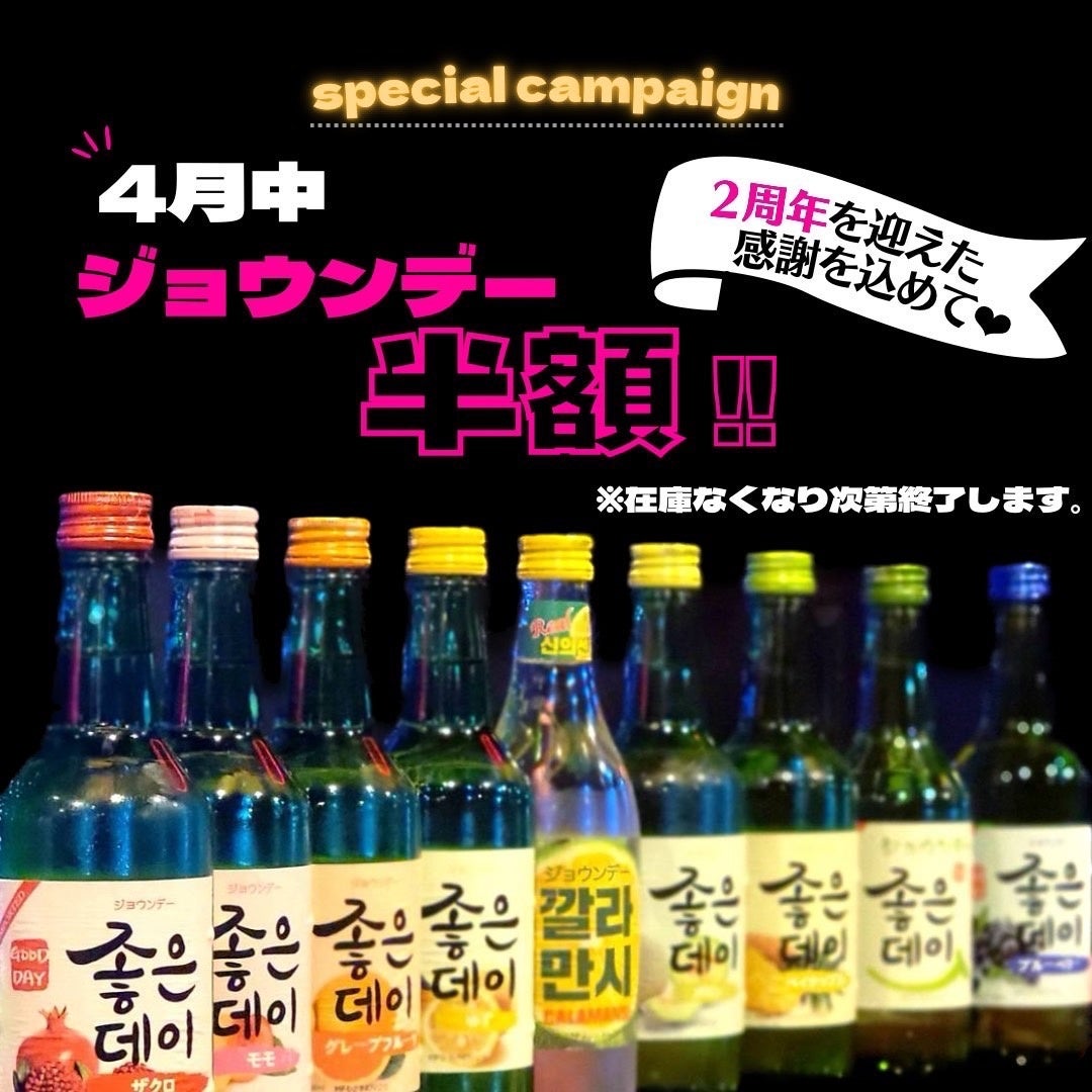 韓国語で『良い日』を意味する『ジョウンデー』で皆さまの『良い日』をオープン2周年とともに盛り上げます。