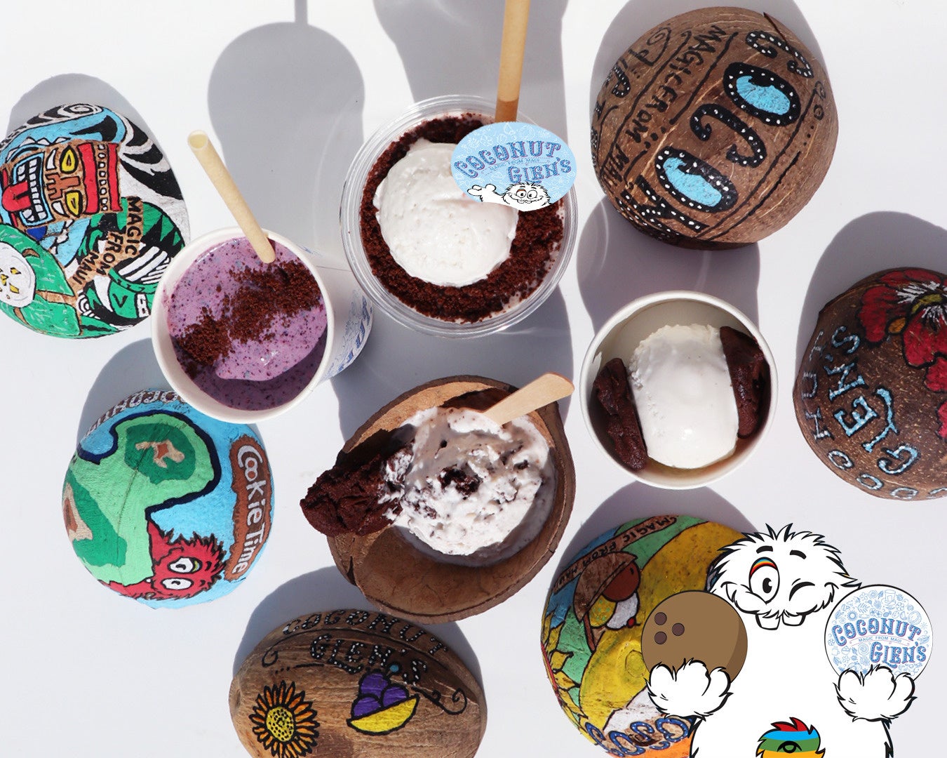 ココナッツグレンは、本店をハワイ·マウイ島に構えるヴィーガンアイスショップです。マウイ島のジャングルにすむ、元ミシュランシェフのグレン氏が考案した、アイスクリームを超えた新しいヴィ―ガンスイーツ専門店として、2019年7月表参道に初上陸し(2021年閉店)、2022年に麻布十番店・浅草店がオープンしました。無添加で天然素材にこだわり、ヴィーガンなのにリッチで濃厚な味わいが特長で、食材のしたごしらえをし、原材料を切る・砕く・煮るというアイスの製造工程では今までありえなかった大変手間のかかる調理工程で作られたアイスクリームです。