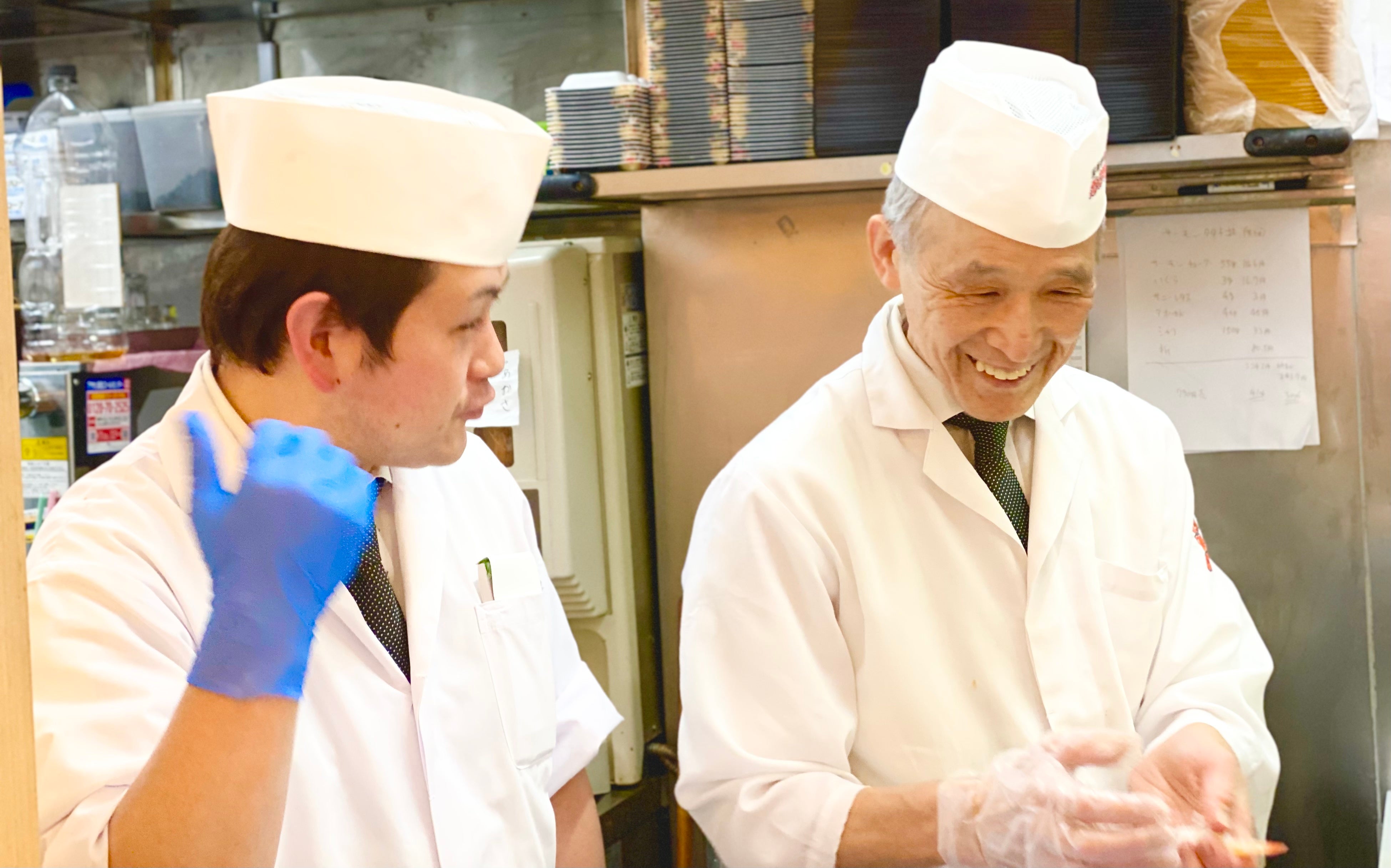 「お客様がお店に入った時に、スタッフの感じの良さによってお寿司の美味しさが決まると考えています。お客様が気持ちよくお寿司を召し上がっていただくためのよい雰囲気を作っていくことが大切、と常日頃から声掛けしている」と当社の代表である郭(かく)は話します。こうした代表の考えをいつも伝達することはもちろんですが、社内の風土がホスピタリティのある接客ができる環境を作っています。