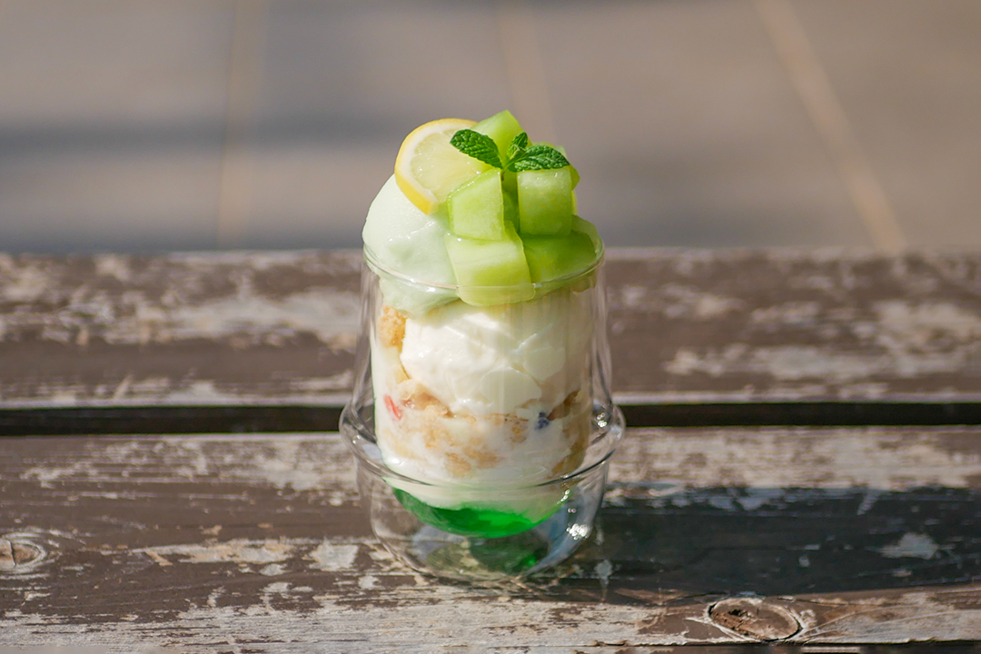メロンとヨーグルト、はちみつの新しい組み合わせ「メロンとはちみつのヨーグルトパフェ」