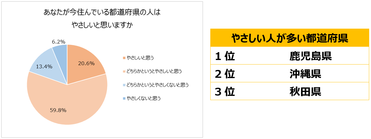 やさしい人が多い都道府県1位は「鹿児島県」2位「沖縄県」3位「秋田県」