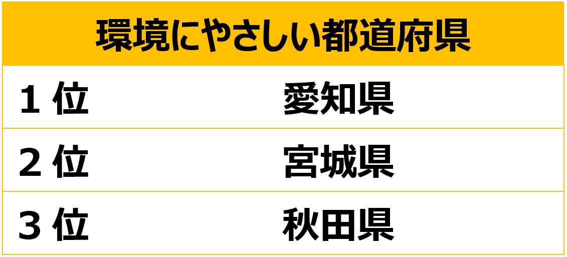 環境にやさしい都道府県ランキング1位「愛知県」2位「宮城県」3位「秋田県」