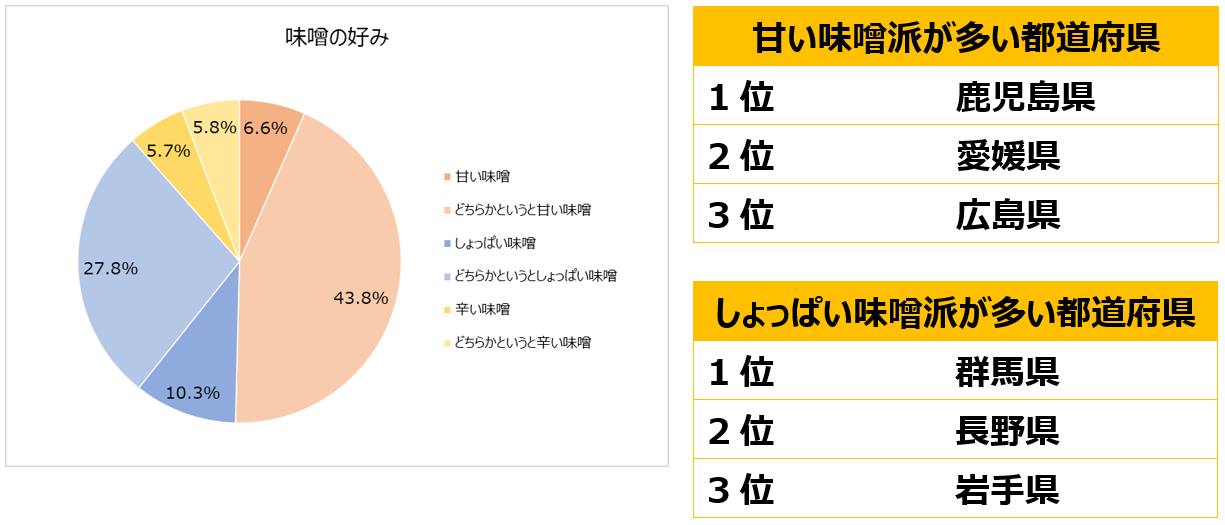 1.「味噌は甘い派」が過半数!甘い味噌派が多い都道府県ランキング1位「鹿児島県」