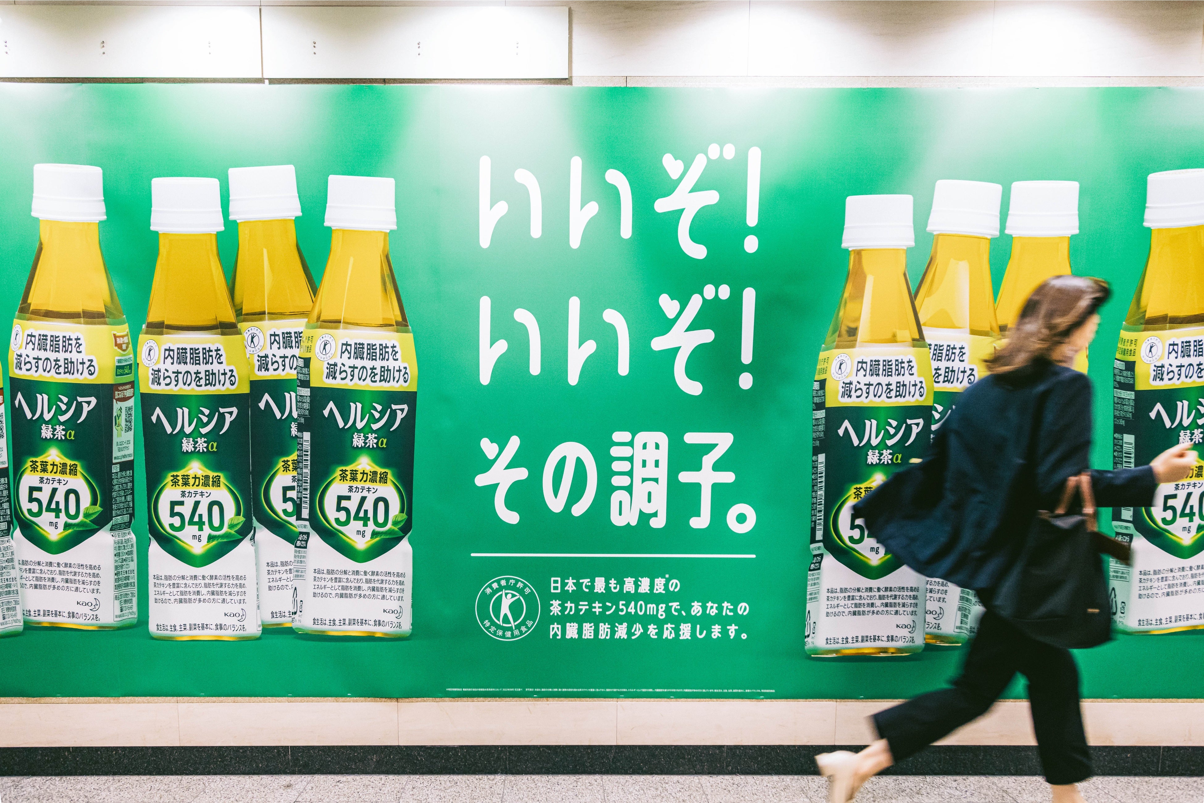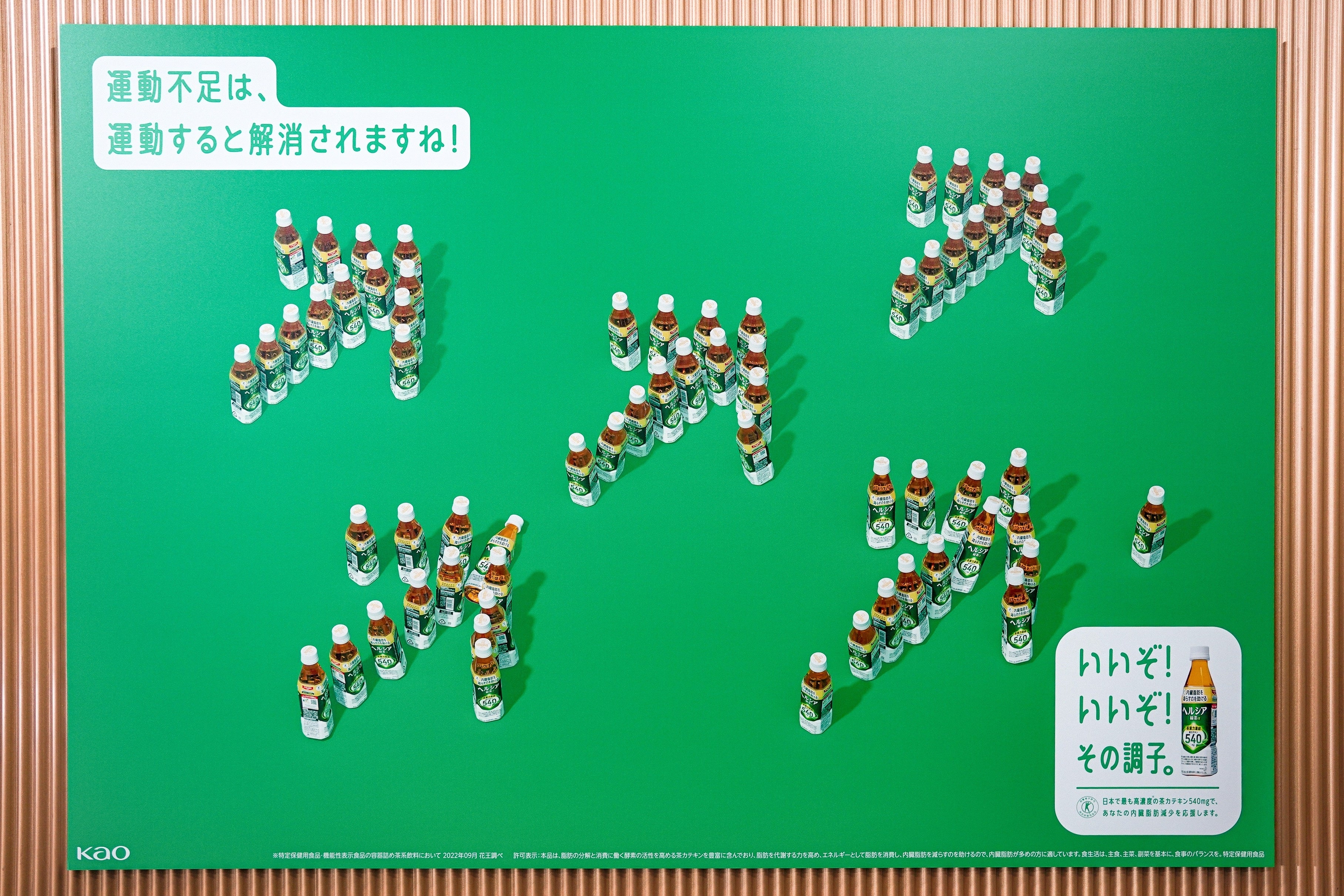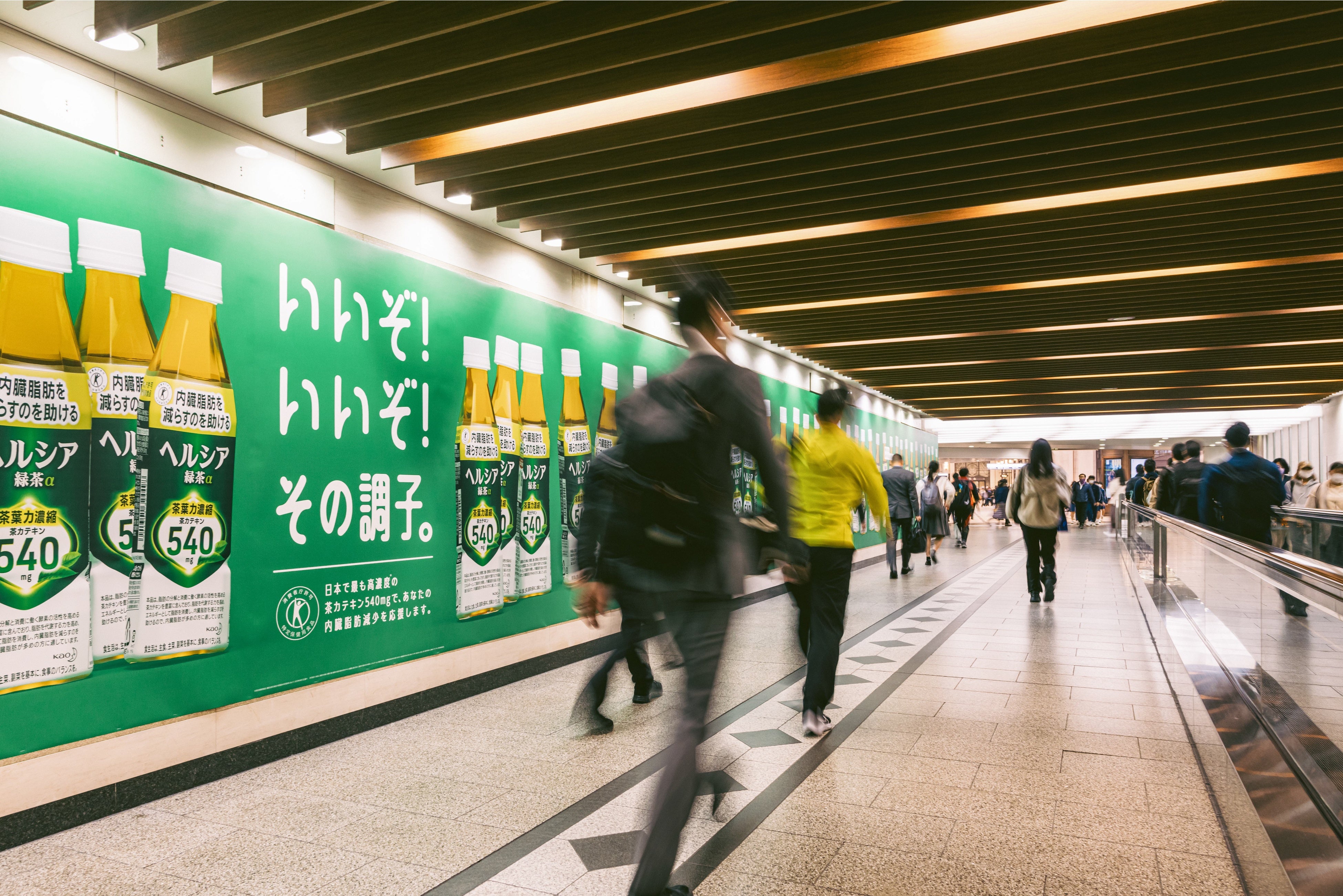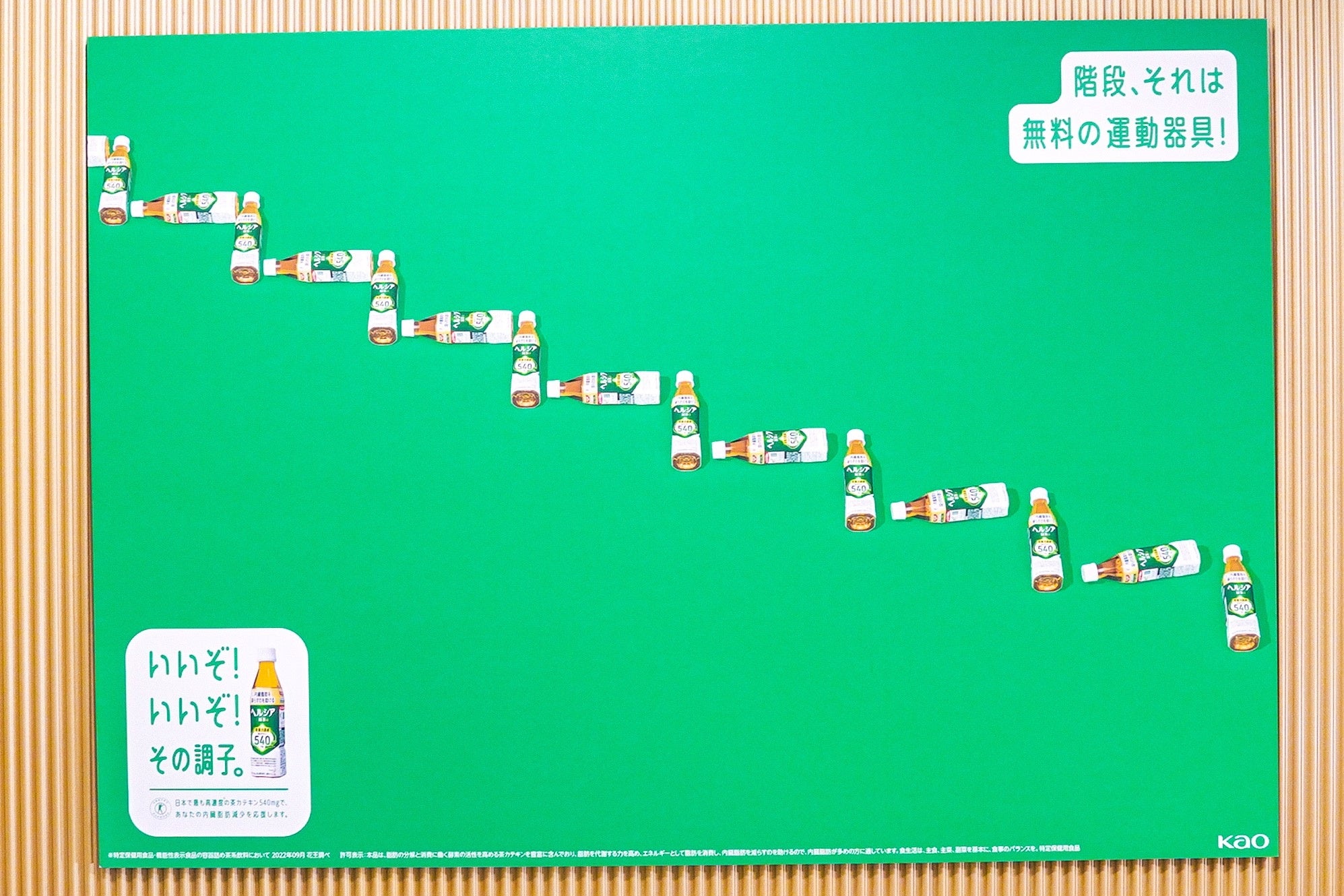 ヘルシア緑茶は、体脂肪減少を助けるお茶として2003年に発売されました。以来、名前の由来である“ヘルシーをアシストする”の通り、ブランド「ヘルシア」は内臓脂肪をはじめとした健康の悩みに寄り添い、多くの方をサポートしてきた実績を持ちます。そんなヘルシアが発売20周年を迎えるにあたり、より多くの方に日常生活の中でささやかな健康行動を継続する大切さを知っていただくべく、東京・都営大江戸線六本木駅の階段、大阪・阪急大阪梅田駅のムービングウォークに、サステナブル・エクササイズを楽しんでいただくための、様々な応援メッセージ広告を掲出しています。