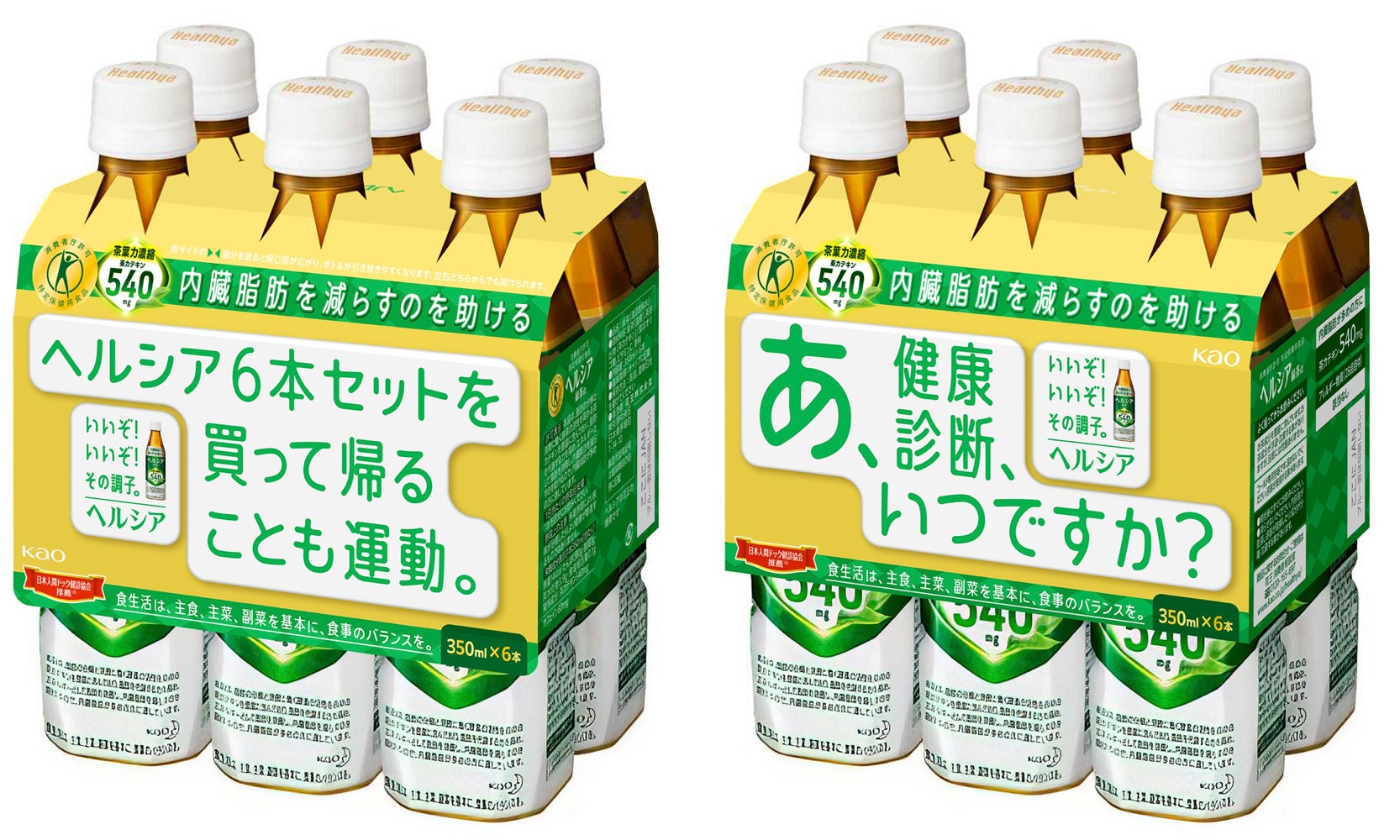 - ヘルシア6本セットのパッケージでもメッセージ発信