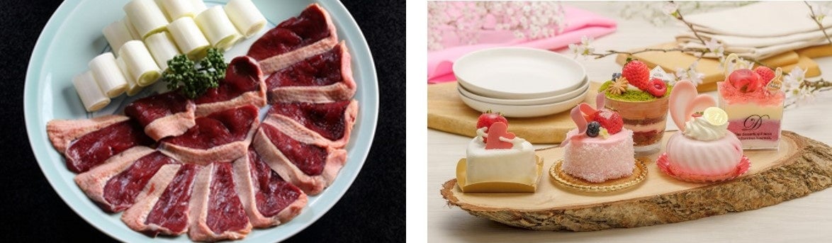 左:鴨のまち小郡の天然鴨料理 右:恋人の聖地スイーツ
