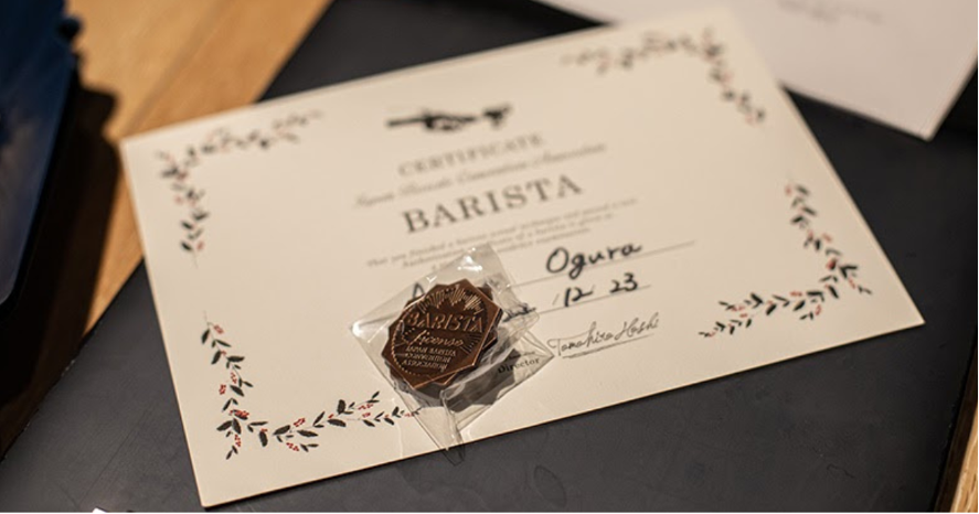 このバリスタ育成プログラムで習得した知識や技術をもとに、試験を突破された方には日本バリスタコンベンション協会(JBCA)認定の資格取得をすることも可能です。