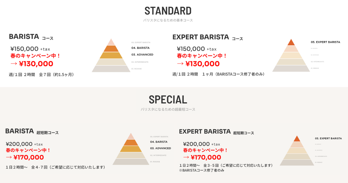 ■BARISTA短期集中コース BARISTAコースを2週間で修了する超短期コース。
