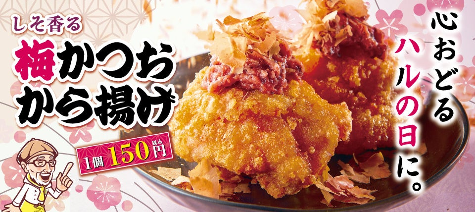 揚げたてから揚げとテリー伊藤こだわりの玉子焼き「から揚げの天才」は、2023年4月1日(土)~「梅かつおから揚げ」1個150円(税込)を期間限定で販売いたします。昨年好評で復活希望の声を多く頂き、一年振りに再販を決定いたしました。おかずにはもちろん、おつまみにもピッタリな商品です。
