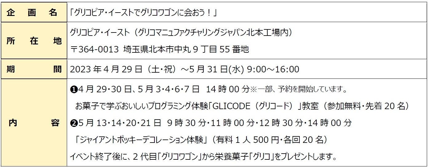 | グリコピア・イースト | 2012年 | https://www.glico.com/jp/enjoy/experience/glicopia/east/ |