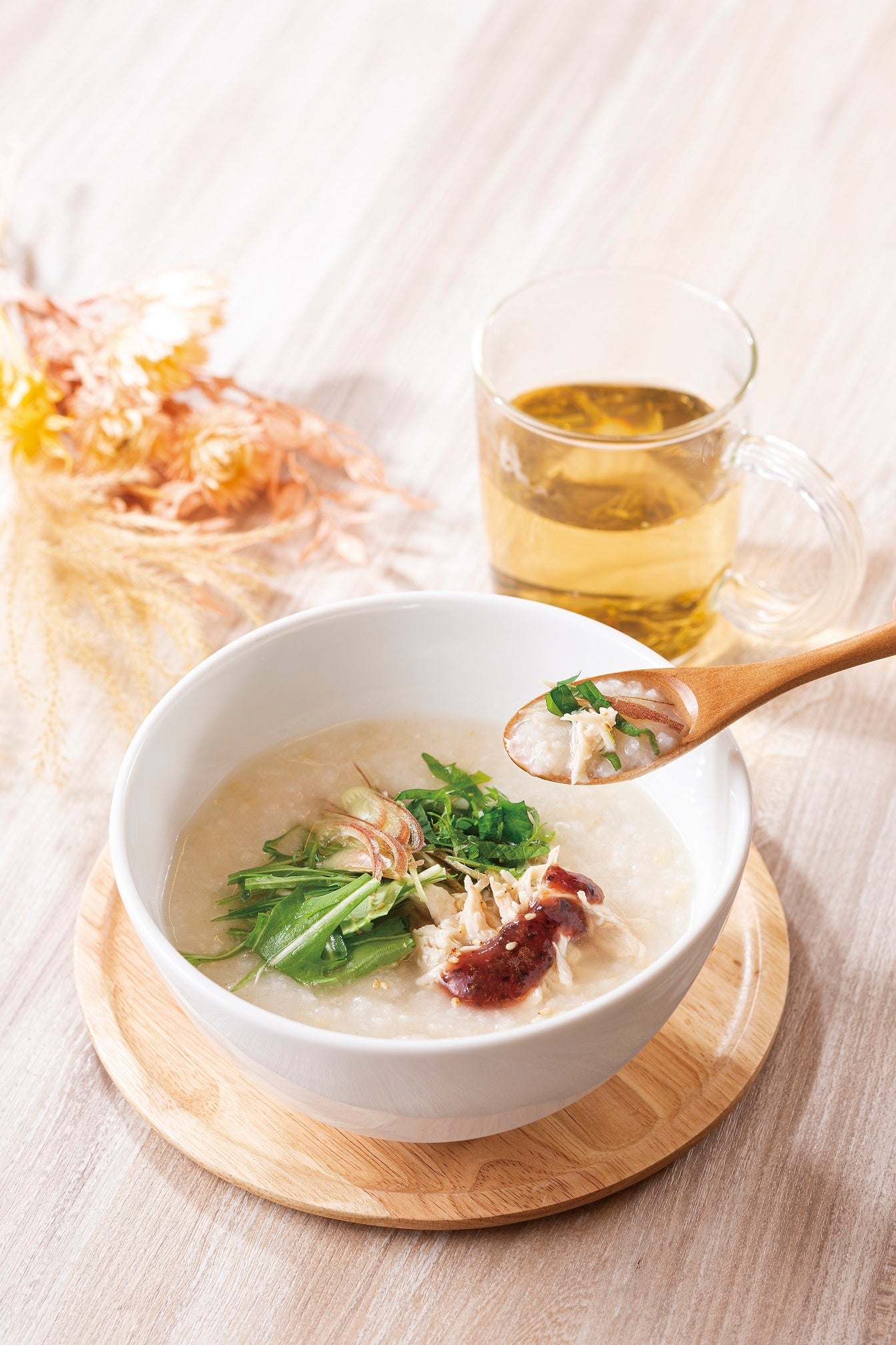 干し貝柱・チキンスープ、昆布・生姜とともに毎日、店内で炊き上げている自慢のおかゆのほか、濃厚担々麺、おかゆや麺に合う点心も。日常の中にホッとひととき、カラダに元気を取り入れる、粥の専門店です。