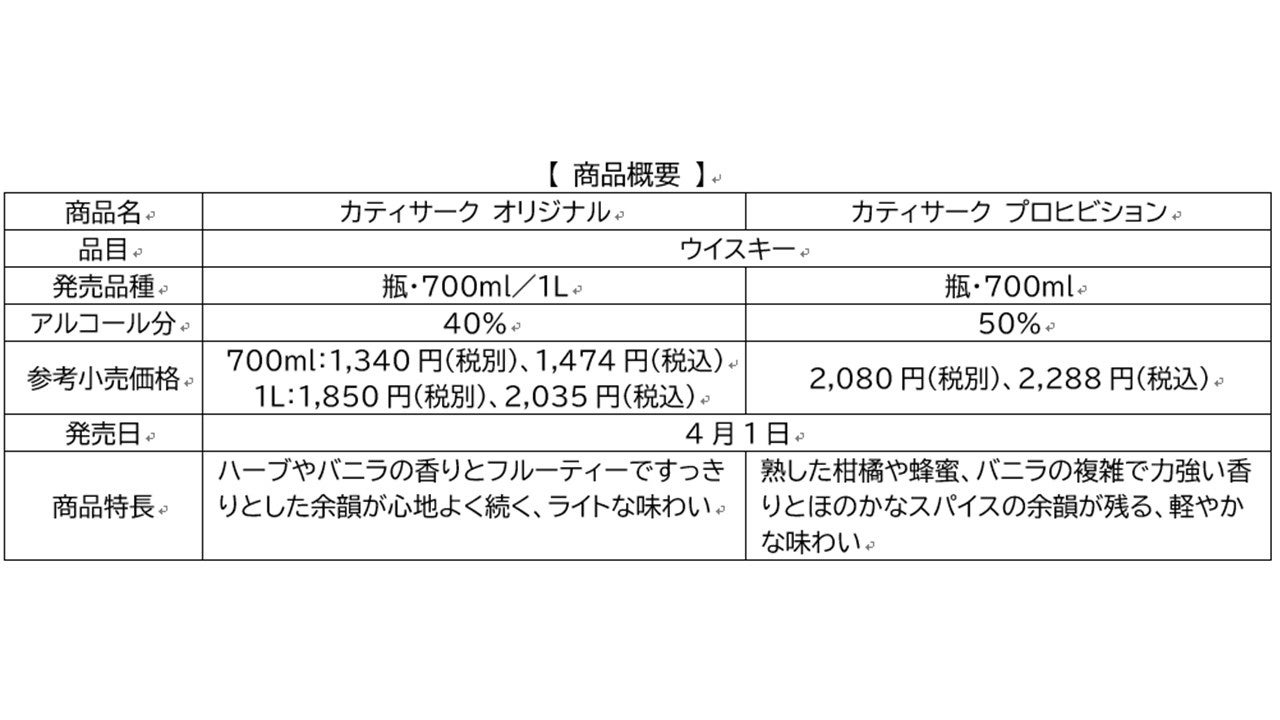 アサヒビール株式会社(本社 東京、社長 松山一雄)はフランスのスピリッツ・リキュール製造販売企業のラ・マルティニケーズ社が保有するスコッチウイスキー「カティサーク」の日本国内における販売権を取得しました。4月1日から販売を開始します。