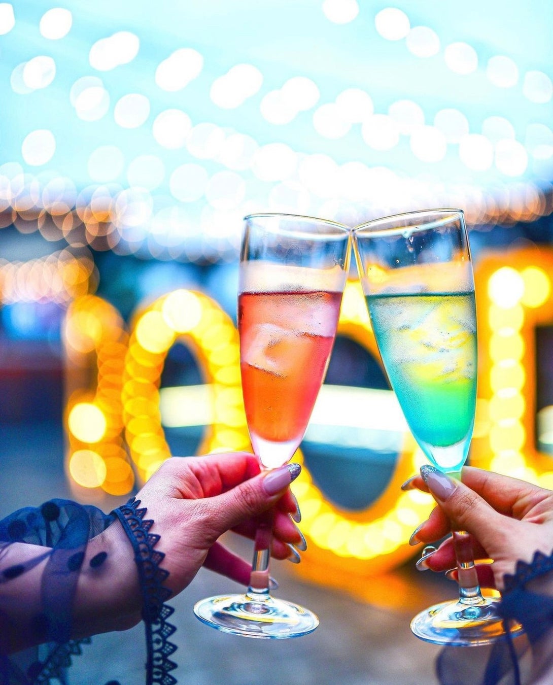 大阪ミナミの夜景が一望できる、日本初2名専用全席カップルシートのプレミアムエリアと、開放的なオープンエアの空間で、豪快なアメリカンBBQを仲間と楽しめるBBQエリア。