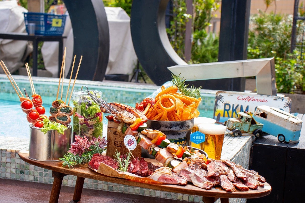 まるで海外リゾートにいるような、緑に囲まれた非日常を体験できるBBQビアガーデンで心地よい風を感じるランチタイムや、夜景一望のディナータイムも仲間や大切な人と一緒にBBQをお楽しみいただけます。