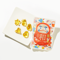 「招き猫」「だるま」「さくら」「相撲」「富士山」をかたどった、金色に輝く飴。見た目にも味にもこだわりがつまった「和べっこう飴」。