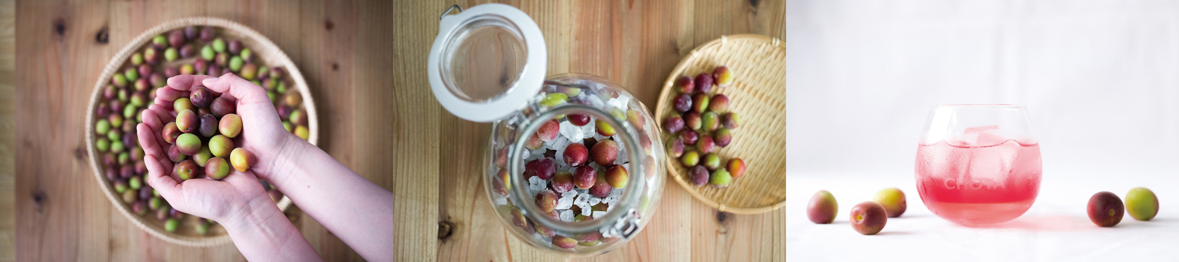 色味が落ちやすいため、チョーヤではシロップ作りでの使用をおすすめします。出来上がったシロップは、甘酸っぱいサクランボのような味わいが楽しめ、砂糖の代わりにお料理で使うのもおすすめです。