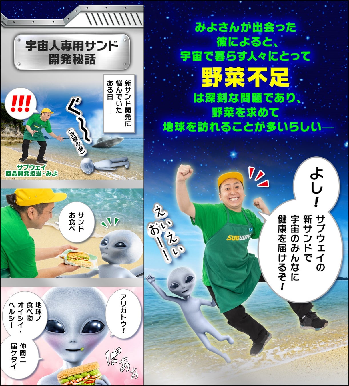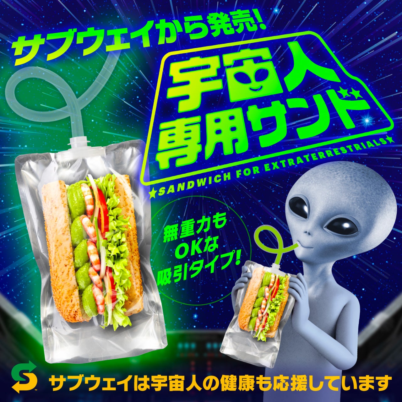 1965年の創業以来、世界中に3万7000店舗あまりを展開し、各国の皆様にヘルシーなひと時をお届けしてきたサブウェイですが、この度、地球外にお住まいの宇宙人の皆様にも、フレッシュなサンドイッチをお届けすることを発表いたします。