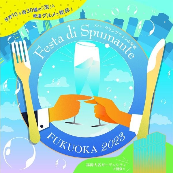 4年ぶりの開催になる「Festa di Spumante FUKUOKA 2023」は、会場を一新して話題の施設「福岡大名ガーデンシティ」で開催します。甘口・辛口・個性的なエチケットのスパークリングワインが世界10か国30種類が一堂に。都会のさわやかな空間で、厳選されたグルメとワインで乾杯しましょう!!