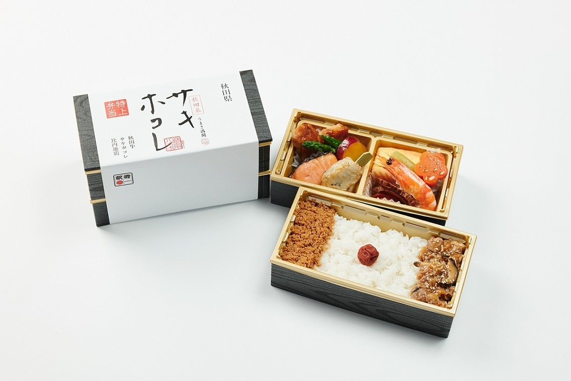 「あきたこまち米」や秋田米新品種「サキホコレ」、地元の食材・名産品を使用した各種駅弁を現地から輸送し販売致します。この機会に、郷土色豊かなお弁当を存分にお楽しみください。