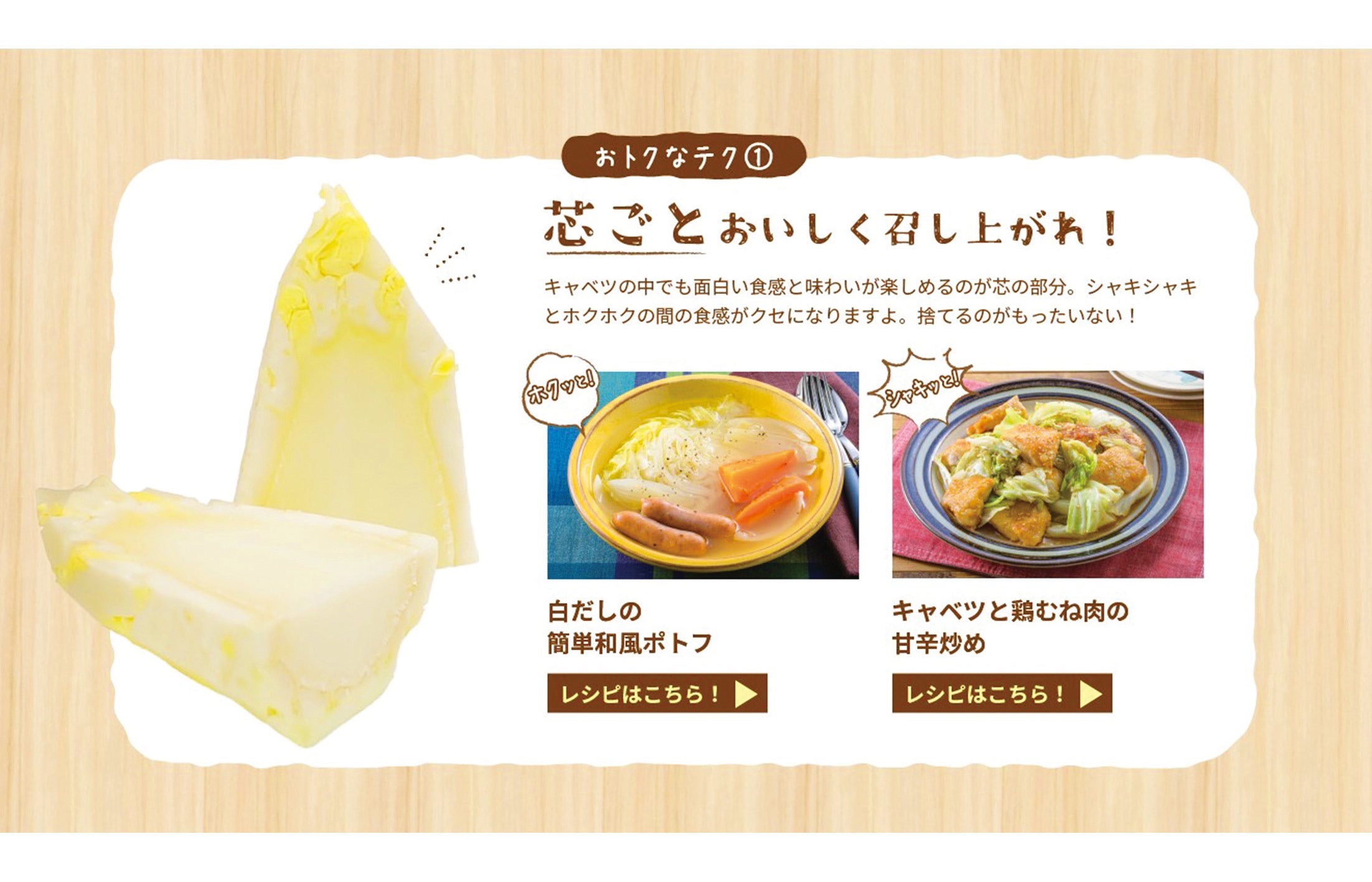 サイトでは、これらの食材に合わせたおすすめの使い切りレシピや、余りやすい調味料を活用したレシピを紹介します。また、キャベツの芯や白菜の外葉等、普段捨ててしまいがちな部分をおいしく調理するレシピや、食材を長持ちさせる保存方法もお伝えします。