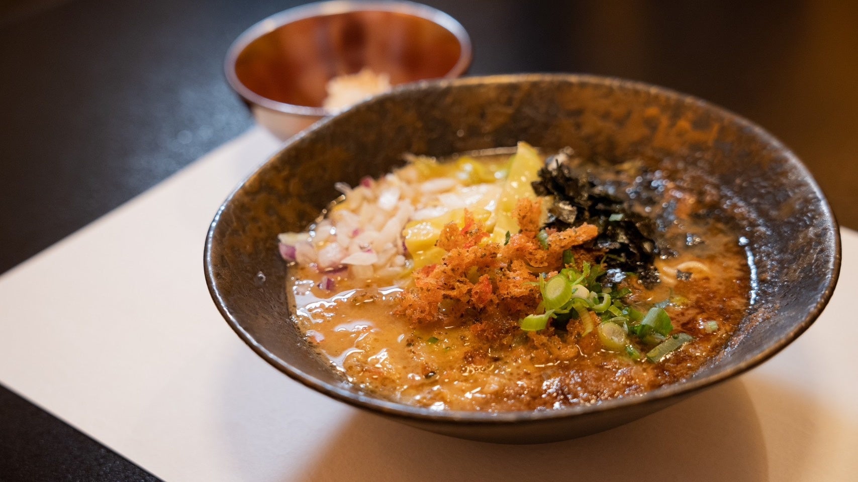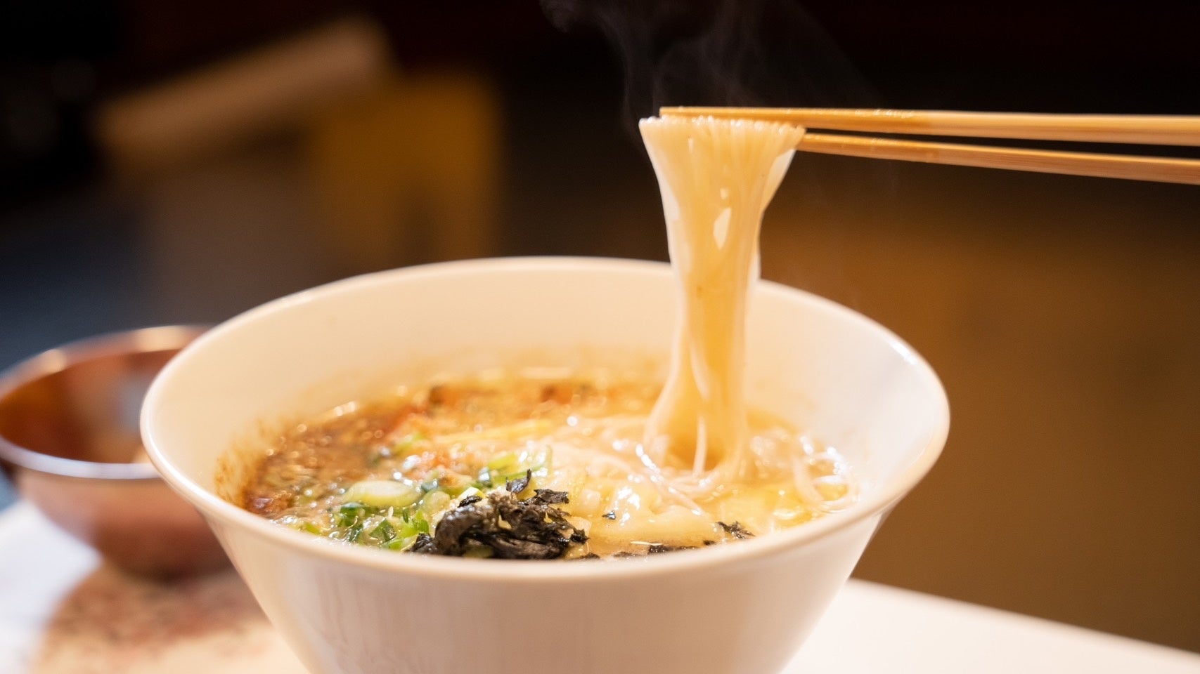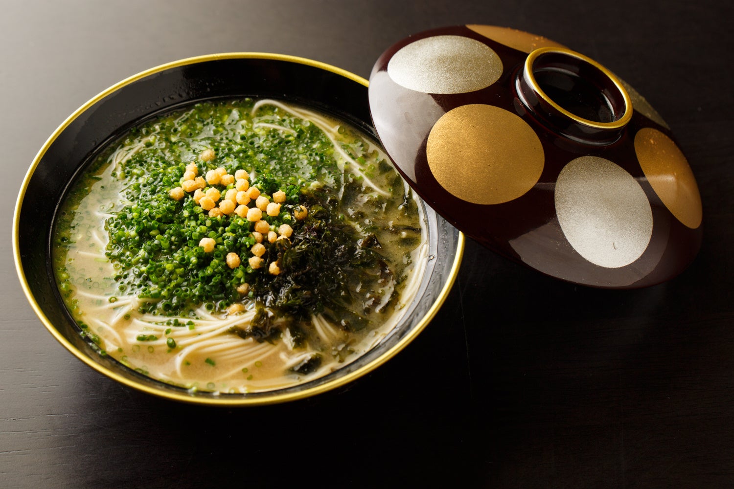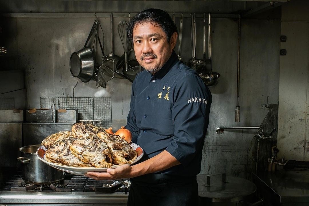 九州一の繁華街、福岡中洲に軒を連ねる名店「割烹味美」の主人、河原畑豪二氏。ミシュランガイドで星を獲得した経歴を持つ彼が、長年の苦労の末にたどりついた究極の出汁を使用した『魚骨拉麺』が生まれました。