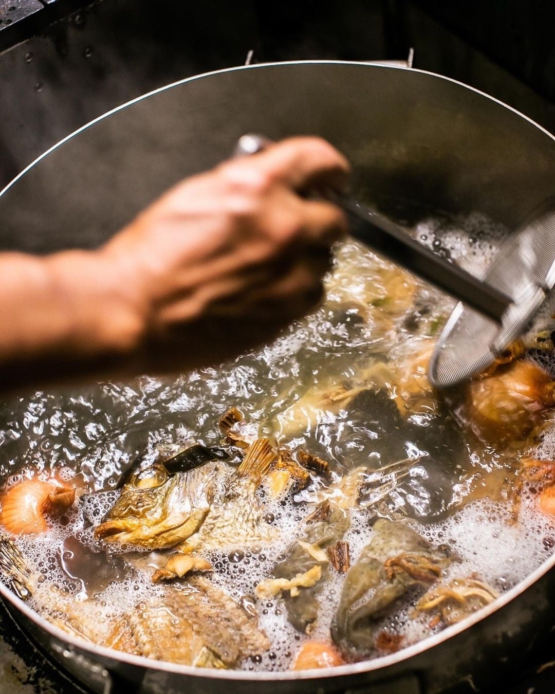 そこで大将はひらめき、鯛の頭と骨を使って、スープを作ることにしました。