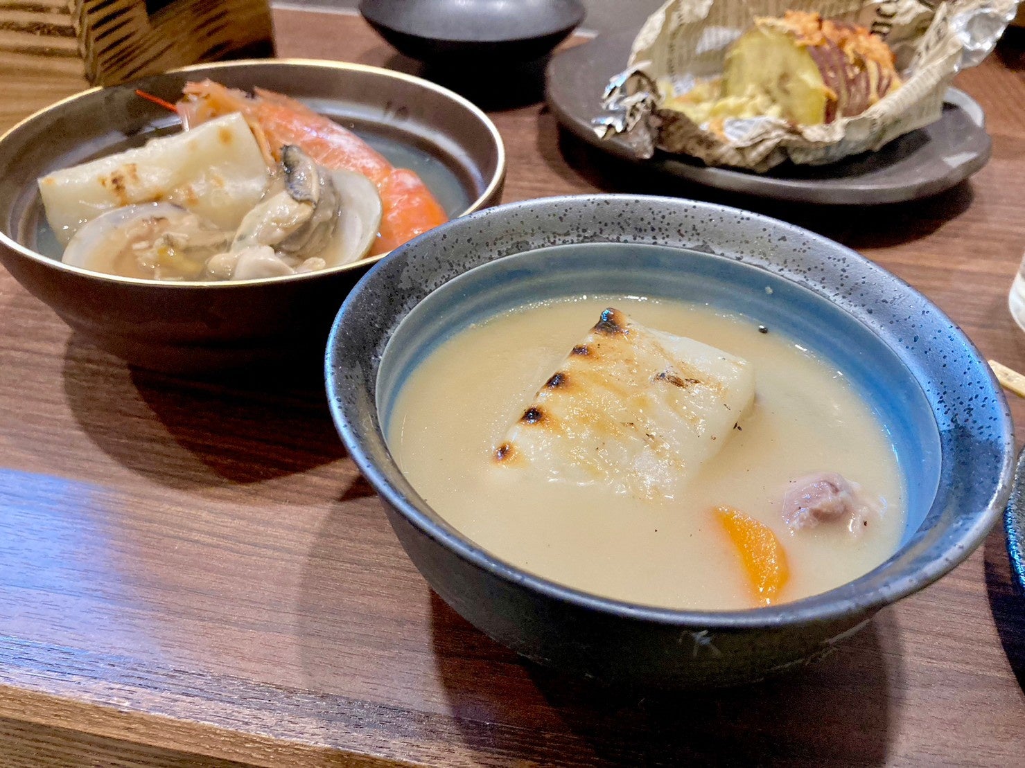 バーでは、日本各都道府県のお雑煮を月替わりで東西4種類ずつ提供し、あんもち雑煮やくるみ餅といった甘味も提供します。バーですのでお酒が進むメニューもありますが、飲んだ後はお雑煮のお出汁でほっと身体を労っていただけます。