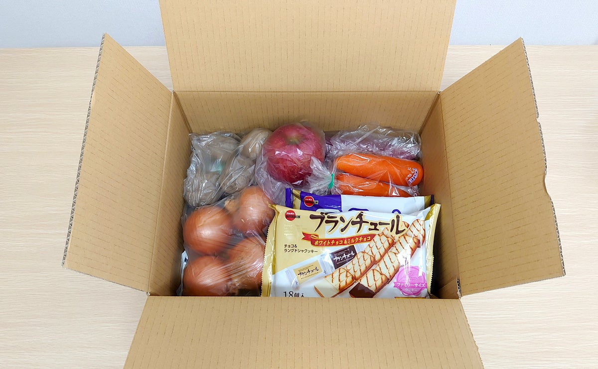 食糧支援の内容は「スクージー4袋」「米、パスタ」「日持ちの良い野菜」「ふりかけ、のり」「お菓子(子供用)」などをお送りする予定です。