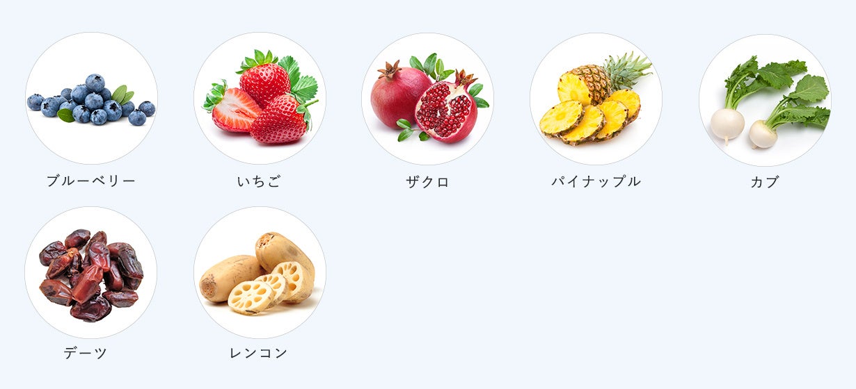 それぞれのスムージーには7種類の食材が入っており、旬の限られた食材や珍しい果物、スーパーフードなど今までにない新しいスムージーとなりました。
