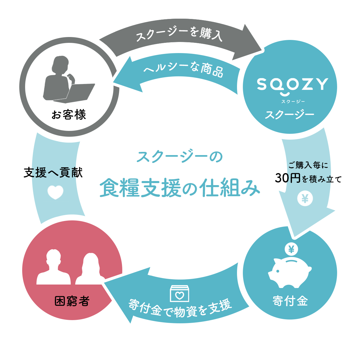 株式会社TAIYO(本社:神奈川県横浜市、代表取締役社長:寺本 一平)は注文が食糧支援につながるソーシャルフード「SQOZY(スクージー)」で、1人でも多くの生活困窮者の方に食糧支援をすることを目指します。