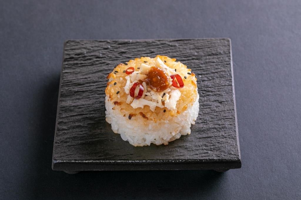 厳選したお醤油を塗って香ばしく焼き上げた焼きおにぎり。鶏のささみと鷹の爪をトッピングした食欲そそるおにぎりです。