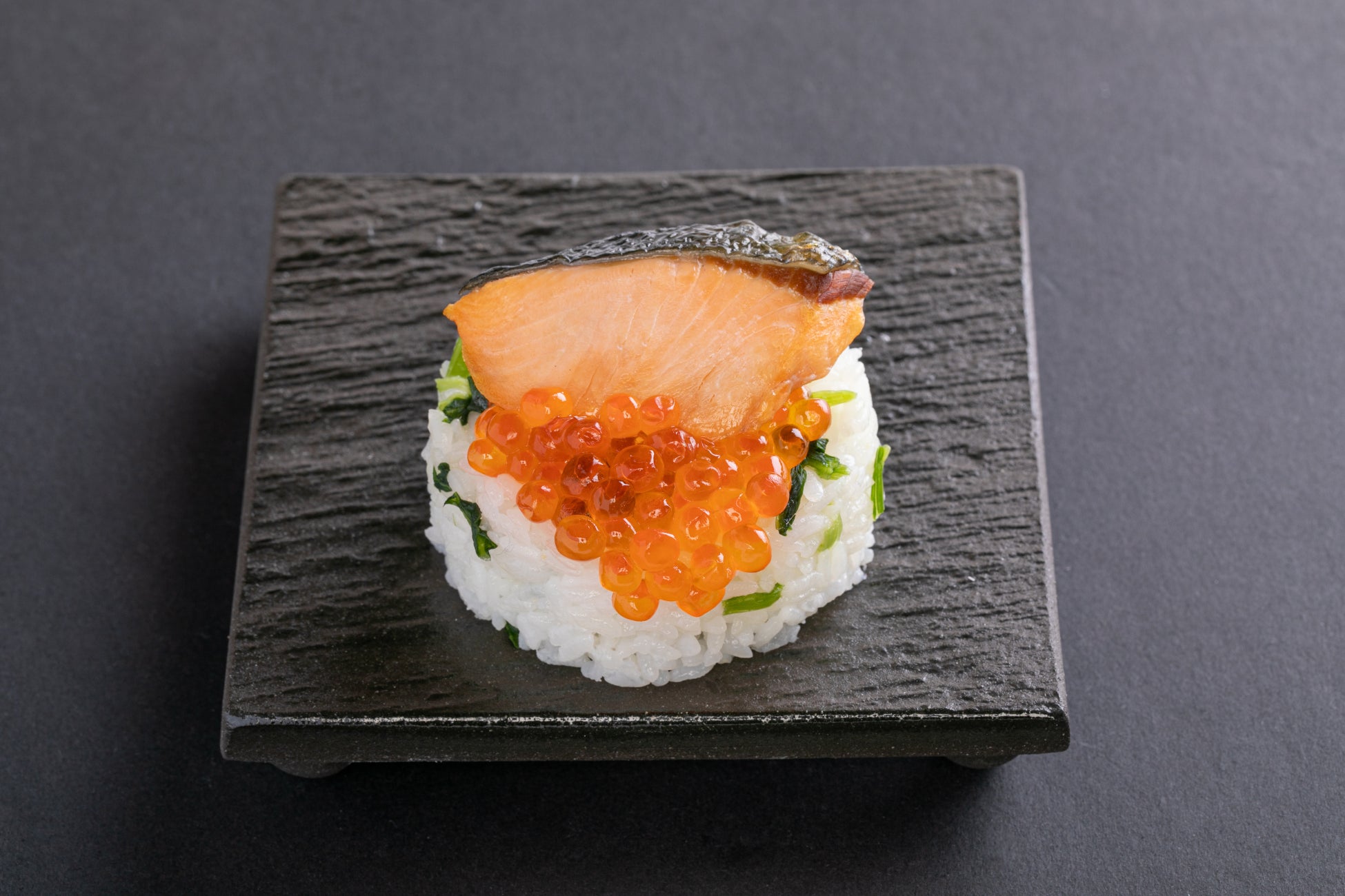 北海道産の鮭といくらを贅沢に使用しました。みぶなといくらの食感も楽しいおにぎりです。