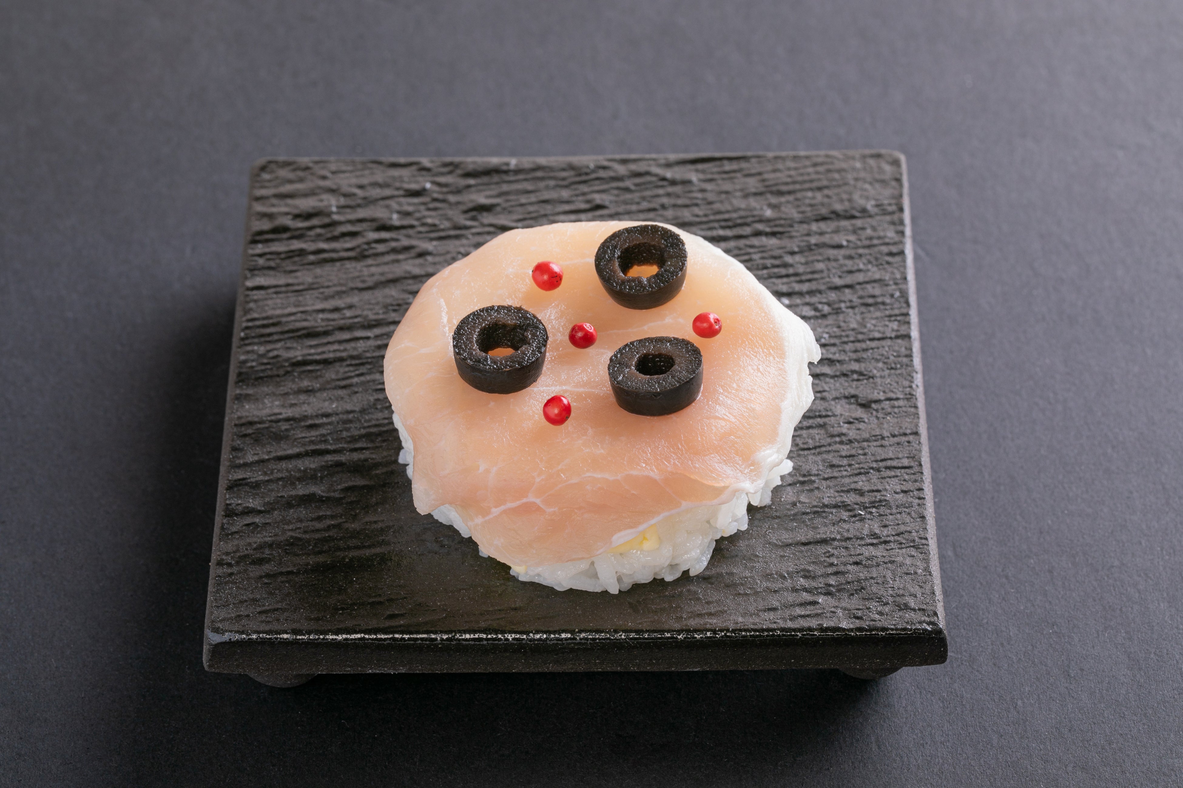生ハムを使った、見た目もインパクトがあるイタリアンおにぎり。ごはんにチーズを混ぜ合わせてリゾット風に仕上げ、生ハムとの相性も抜群です。