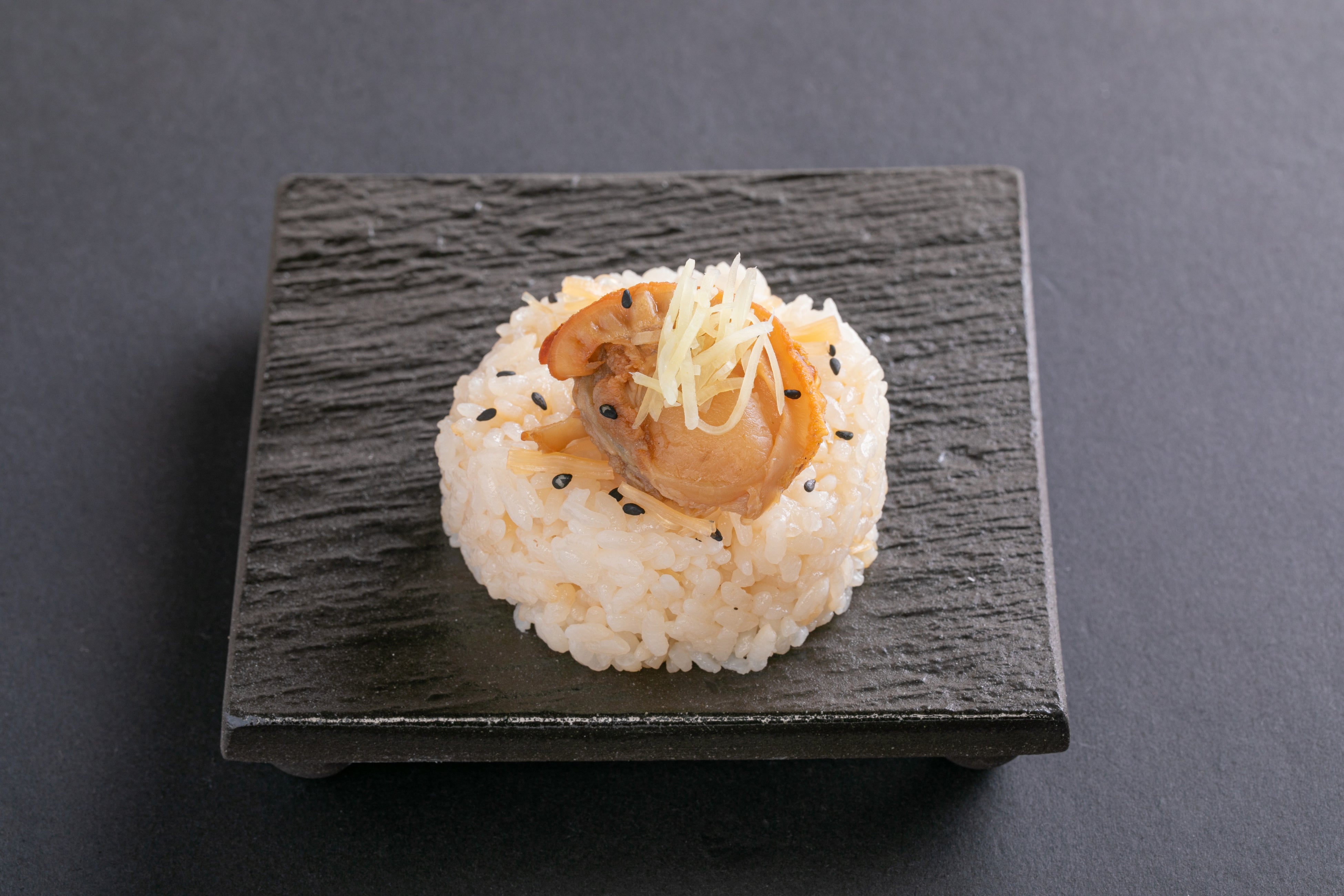 噛めば噛むほどに旨みのあふれるホタテの貝柱が主役のおにぎりです。出汁が香る炊き込みごはんも絶品。