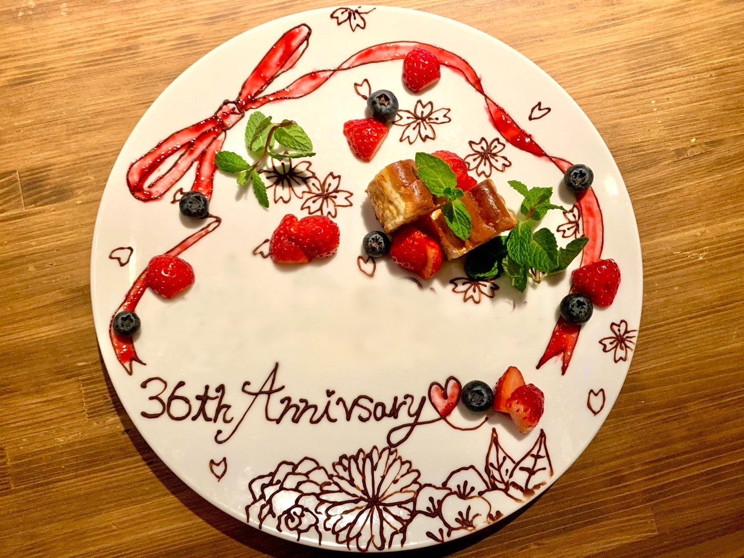 そんな立ち上げ時期を経て、緊急事態宣言などを避けて徐々に提供するようになり、今では多くの人にご利用いただけるRouge Roppongiの看板メニューにまで成長しました。お祝いのメッセージが添えられた、その日限りの手作りのアニバーサリープレートは、お客様のご要望に応じてメッセージや名前、好きなキャラクターなどをデザインするため、他では体験できない特別感を演出できます。