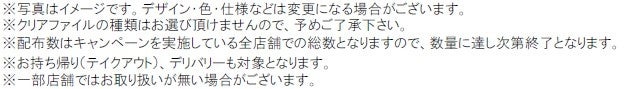 ①対象商品のご注文で「オリジナルクリアファイル」をプレゼント。(先着40万枚限定)