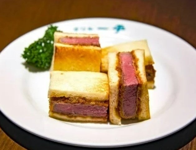 お店の看板メニュー“ヘレビーフカツレツ”を、神戸のパン屋さん「トミーズ」のふわふわのパンでサンド。自慢のデミグラスソースもたっぷりと味わえます。