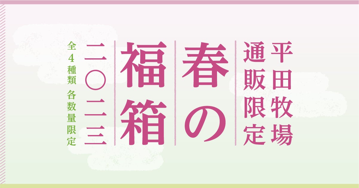 株式会社平田牧場(山形県酒田市/代表取締役 新田嘉七)の運営する、公式オンラインショップ(通販店)にて、春の新生活をテーマにした4種の「春の福箱(福袋)」を数量限定で2023年3月31日(金)より販売開始しました。